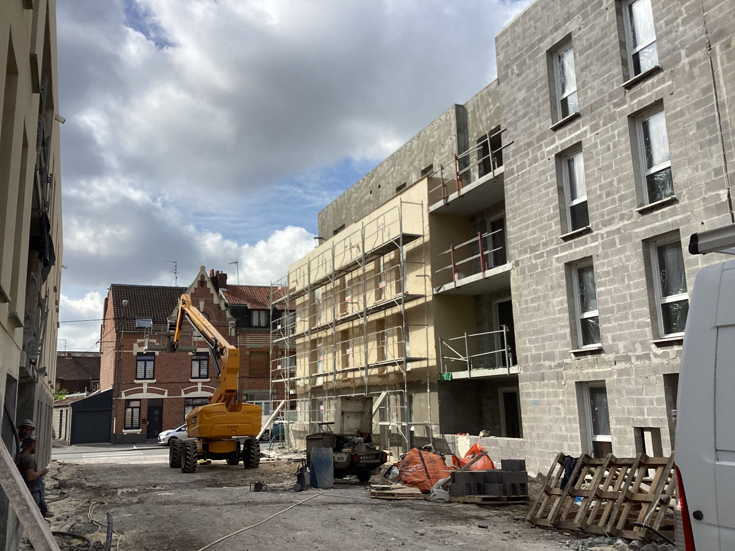 Simultanément, sur une autre zone du chantier, 80 logements collectifs répartis en plusieurs immeubles ont été édifiés. MHC Construction a coordonné plusieurs équipes afin d’exécuter en parallèle les travaux de gros œuvre (fondations communes, dallages, poteaux et murs porteurs) de ces bâtiments de plusieurs étages. L’utilisation de grues à tour sur le site a facilité l'approvisionnement en béton et en matériaux à mesure que les structures s’élevaient. Une attention particulière a été portée à la synchronisation des interventions – maçonnerie, charpente, étanchéité – pour chaque immeuble, de manière à respecter le séquencement optimal des tâches sans temps morts.
